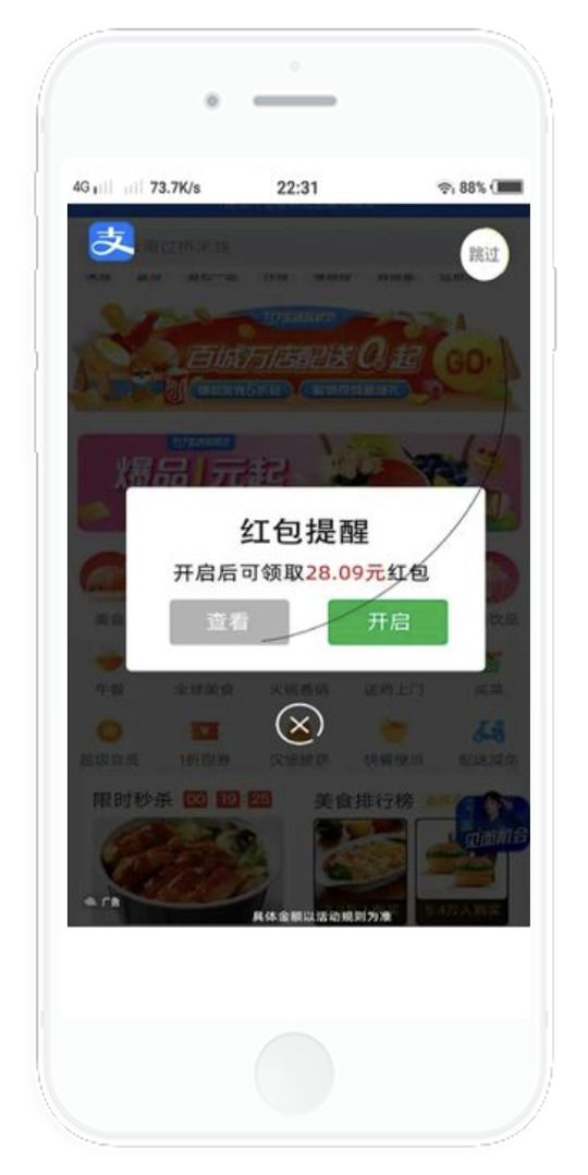 如果你正在打开支付宝,你现在看到了支付宝首页界面了,你会去点它吗?大概率会吧,但这实际上只是开屏广告的素材,他们把支付宝截了个图而已,你的一个不小心,又为他们贡献了一次点击。