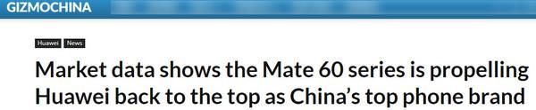 外媒感叹:Mate60正推动华为重返中国智能手机之巅
