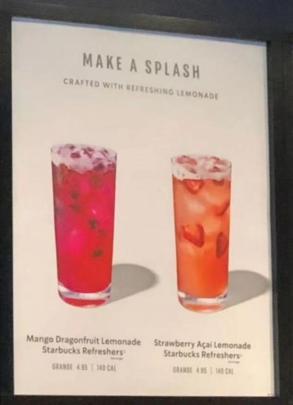 Acai Lemonade Starbucks Refreshers草莓巴西莓柠檬水星巴克提神饮料