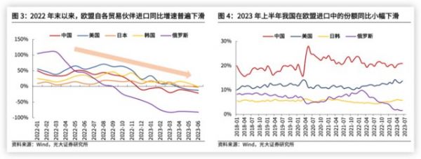 分析师指出,欧盟进口中的份额整体并未明显下降,主要是俄乌冲突导致能源价格上升,高利率环境持续压制需求,使得欧盟产需两端共同走弱。