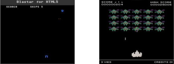 马斯克开发的太空对战游戏《Blastar》(左)街机游戏《太空侵略者》(右)