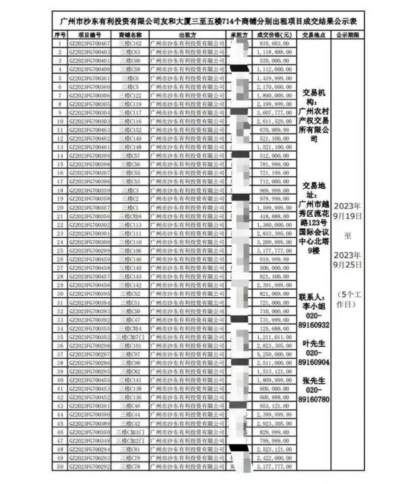 上述成交价在此次拍卖中只属于中位,根据9月19日广州农村产权交易所有限公司发布的出租项目成交结果,成交价格最高达到525万元,也是唯一超过500万元的成交价。据时代财经梳理,这些成交商铺中有超过130个的成交价超过200万元,过百万的超过250个,占比近五成。另有约20个商铺的成交价格不超过10万元。
