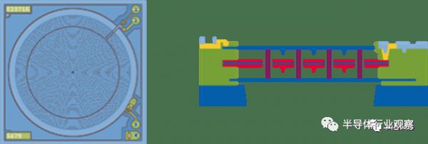 英飞凌MEMS芯片(左)和密封双振膜结构示意图(右)