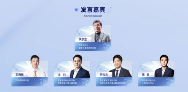 此外,百度首席技术官王海峰、百度集团执行副总裁 & 百度智能云事业群总裁沈抖、百度集团资深副总裁 & 百度移动生态事业群组总经理何俊杰、百度集团副总裁 & 小度科技 CEO 景鲲也将出席主论坛,并带来大模型、AI 原生应用、生成式 AI 生态等内容的最新进展。
