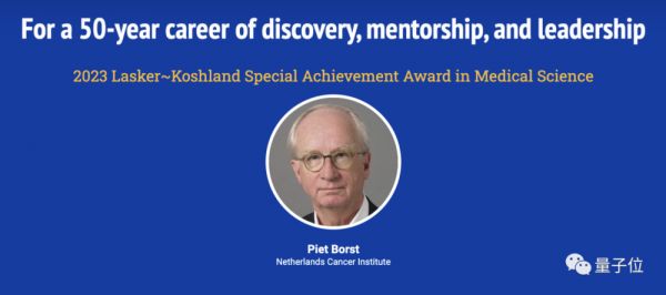 医学科学特别成就奖则颁发给了阿姆斯特丹荷兰癌症研究所的Piet Borst。