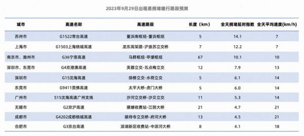 与此同时,高德地图发布了《2023中秋·国庆假期出行预测报告》报告,预测了即将到来的黄金周交通出行状况。该报告数据显示,预计9月29日全国高速出程易拥堵缓行路段有G1522常台高速苏州段(董浜南枢纽-董浜枢纽),平均车速约7km/h;其他还有G1503上海绕城高速(龙东高架路-沪崇苏立交桥),以及G36宁洛高速南京、滁州段(马群枢纽-甲埂枢纽)等。(一橙)