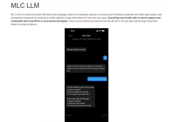 彼时,科技圈大佬陈天奇和他带领的CMU机器学习编译小组(MLC),开源发布了一个叫MLC-LLM的通用解决方案。通过这个方案,任何语言模型都被允许部署在各种硬件后端和本机应用程序上,并为每个人提供一个高效的框架,以进一步优化自己用例的模型性能。