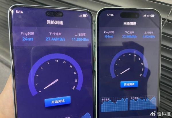 实际测试数据显示,这两款手机的下行速率都能达到20MB/s以上,华为Mate 60 Pro略有领先,不过差距并不大。