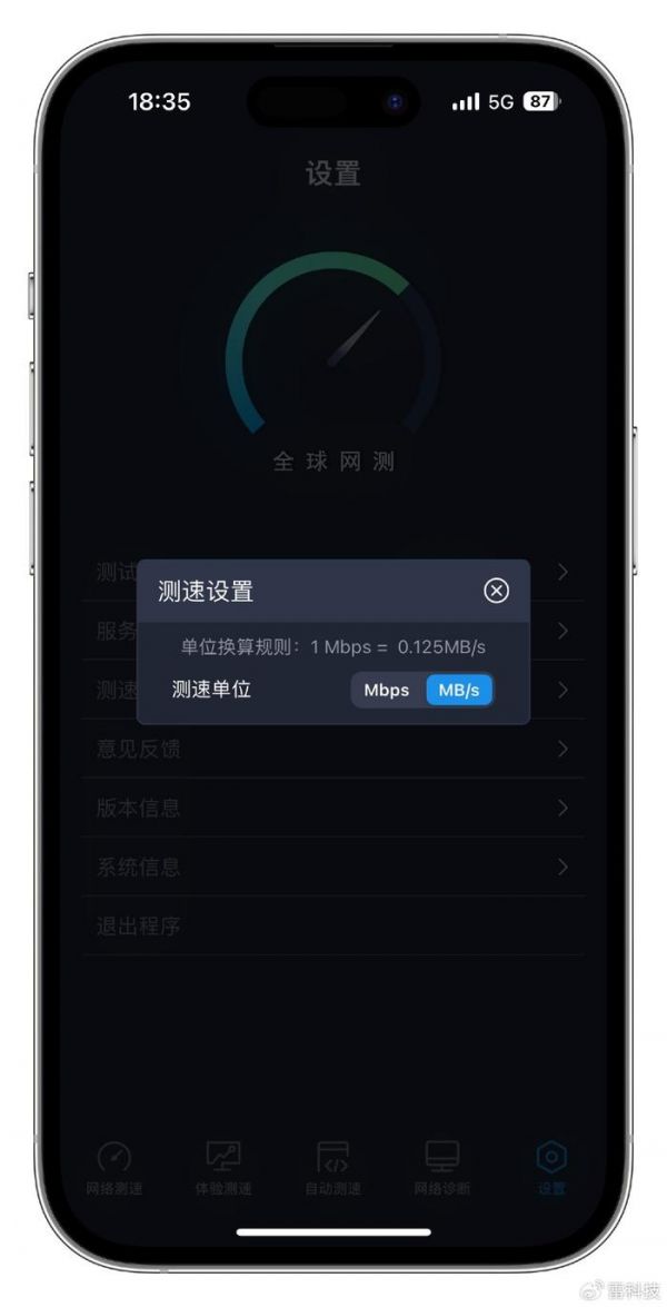 测速软件我们选择的是中国信通院开发的“全球网测”,测速服务器选择的是“广州电信”。为了更直观地呈现真实网速,速率单位小雷改成了更好理解的“MB/s”,而非默认的“Mbps”。之所以不用更知名的SpeedTest,主要源于它暂时无法选择小雷所在的广州本地服务器,测试出的速率会打折扣。