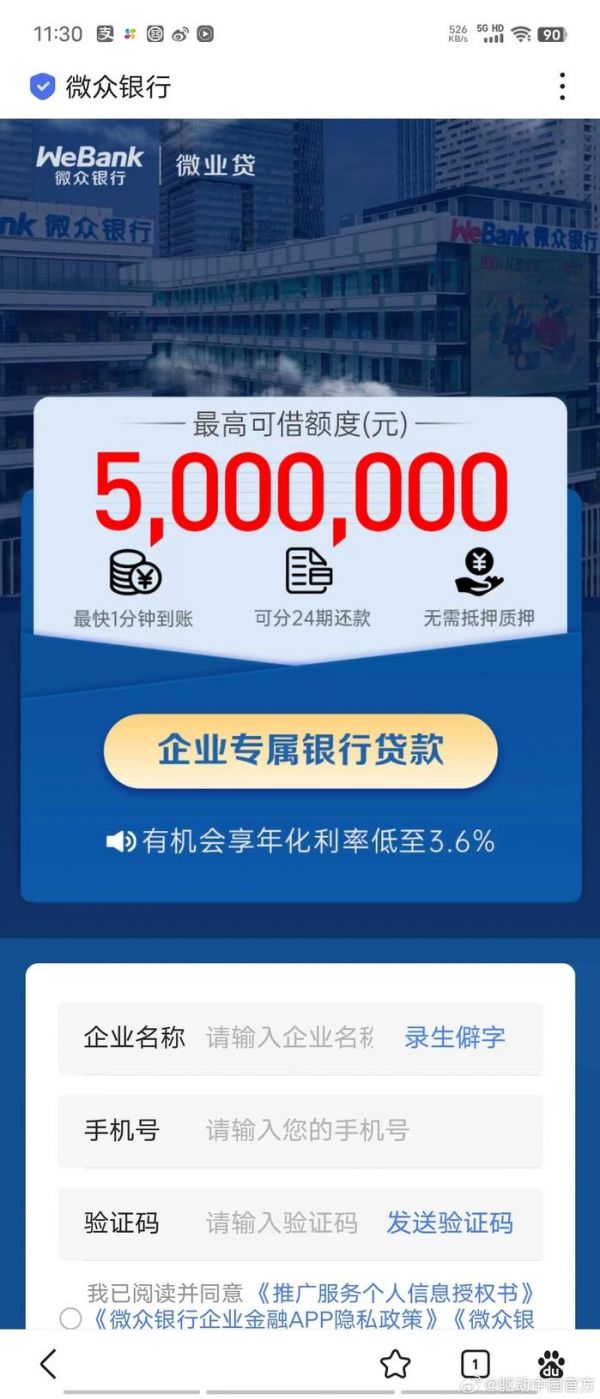 #腾讯# 旗下:微众银行。 其中,微众银行现在最让人烦感的,每天都各种电话骚扰。打着微众银行的旗号,也不知道是不是微众银行自己的业务人员,各种骗。趁国家政策扶技中小企业。打着这个幌子到处骚扰中小企业。