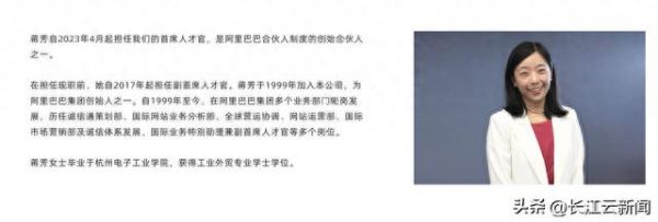 据阿里官网介绍,蒋芳自2023年4月起担任阿里巴巴集团首席人才官,是阿里巴巴合伙人制度的创始合伙人之一。