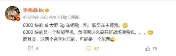 9月21日上午,在NIO IN 2023蔚来创新科技日上,蔚来正式发布了备受瞩目的手机蔚来NIO Phone。就在当天晚间,曾经担任过魅族科技副总裁、魅蓝品牌总裁等职务的李楠在社交平台上发文称,蔚来汽车负债率这么高,开阔新市场简直就是浪费钱,6000元的AI大屏5G车钥匙太酷了,彰显车主尊贵。
