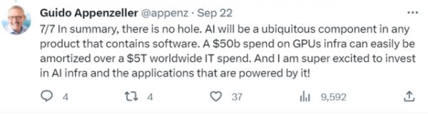 最后,Appenzeller总结称,AI会颠覆一切软件,Cahn笔下的“AI收入缺口”其实并不存在: