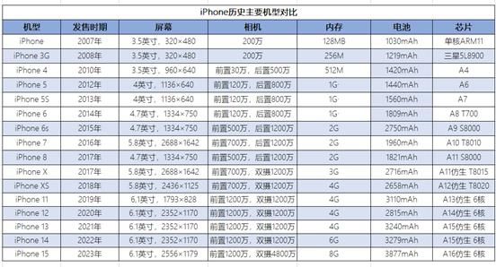 图:iPhone历史主要机型对比;来源:iPhone官网,锦缎研究院整理过去的16年里,可以看到苹果发布会新机种类越来越丰富,但技术突破却逐渐弱化,其中我们在前面提到的硬件制造技术逐渐封顶是重要影响因素,因为从产业链的角度讲,上游技术上限就是下游产品性能的天花板。