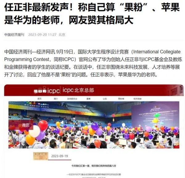 ▲任正非9月19日回答ICPC教练和选手提问的媒体报道截图。毕竟,任正非掌舵下的华为,在国人心中是个很特殊的存在。能与之稍稍媲迹的,或许也只有比亚迪了。