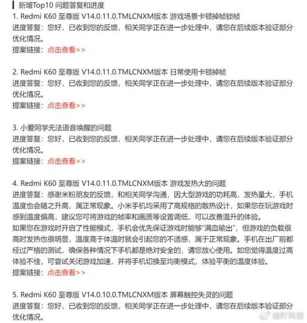 小米MIUI再次公布进展通报:红米K60至尊版问题居多,均在排查中!