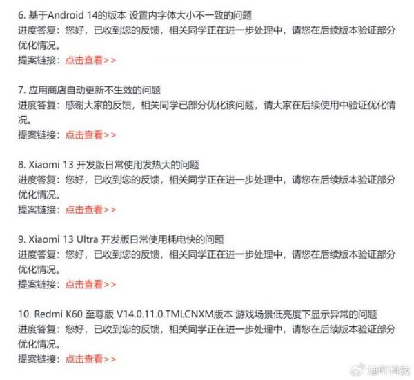 同时小米13开发版日常使用发热大的问题、小米13 Ultra开发版日常使用耗电快的问题都在排查的过程中。