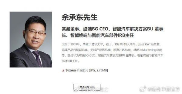 9月22日消息,之前就有媒体爆料,#余承东卸任华为车业务ceo# ,近日,查阅华为官方网站可知,余承东的职位已经发生了变动,最新为常务董事、终端BG CEO、智能汽车解决方案BU 董事长、智能终端与智能汽车部件IRB主任,而他的微博认证也由此前的车BU CEO变成了董事长。