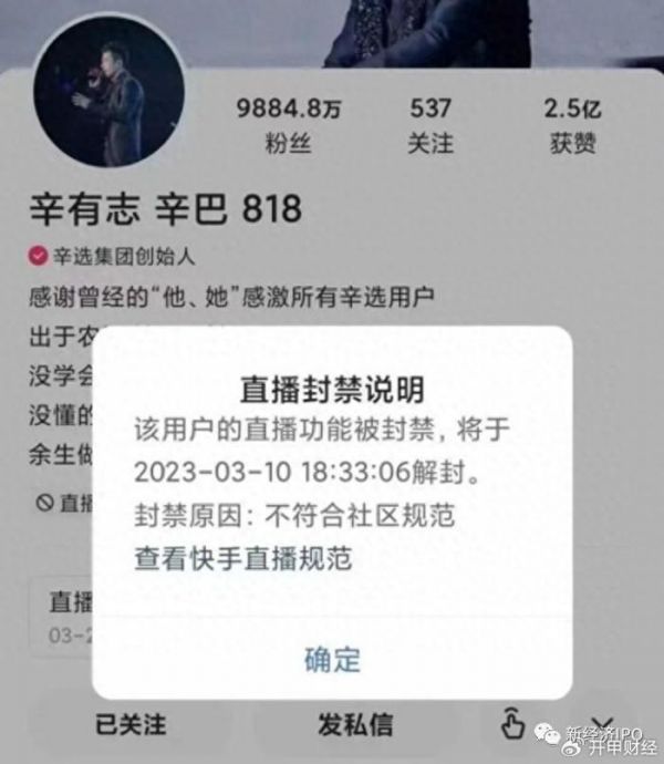 可惜,辛巴骂了又骂,快手忍了再忍。快手给予辛巴的严厉惩罚是在3.8节当天封禁直播48小时,处罚原因是 “违反社区规定”,而并没有说辛巴“造谣”。48小时之后,快手再次低头请拥有近亿粉丝的辛巴出山。