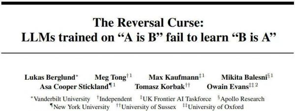 引起争论的研究出自范德堡大学、纽约大学、牛津大学等机构之手。论文《 The Reversal Curse: LLMs trained on “A is B” fail to learn “B is A” 》: