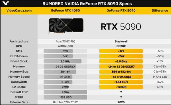 英伟达下代旗舰RTX 5090规格曝光 较4090提升高达70%