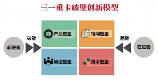 三一重卡正是利用移动互联网技术、电动技术换道超车,实现了对多个进入壁垒的“绕行”或“击破”。