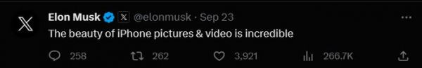 马斯克则在库克的帖子下回应称:“iPhone 的图片和视频之美令人难以置信。”