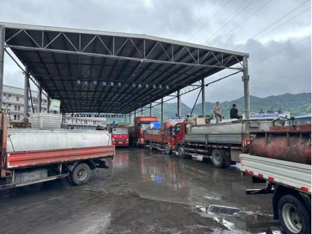 早上10点后的重庆水产市场,已经陆续有拉鱼车排队进入,不过还需要等到下午一点才能开市交易。记者在现场观察发现,现场卖鱼商多过买鱼人。