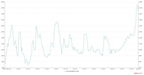 (上海港秘鲁鱼粉仓库价于近期创历史新高 数据来源:Wind)