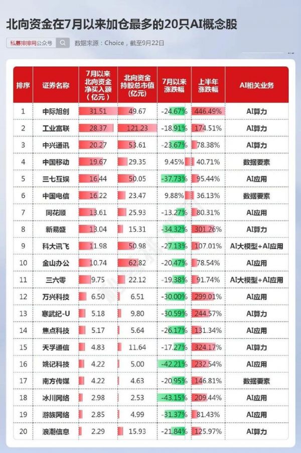 今年下半年以来,北向资金整体呈现流出A股的态势,这也是下半年以来A股表现萎靡的原因之一。同时,AI板块由于上半年涨幅较大,下半年以来也是以调整为主。