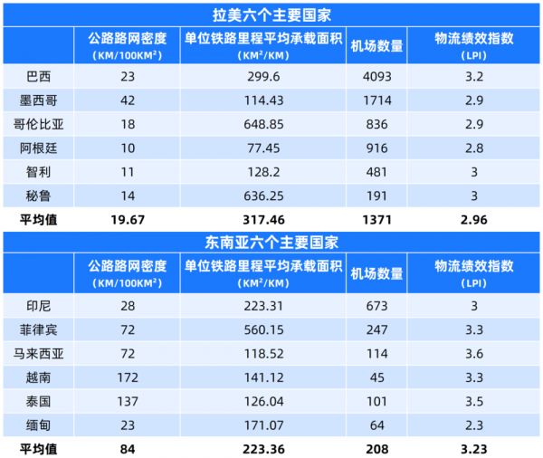 然而,物流仍然是阻碍电商卖家进一步掘金的最大桎梏之一。囿于山脉、雨林、荒漠遍布的地理限制,以及激进私有化过程中交通网的退化,拉美的物流现代化水平一直不尽人意。相较于另一个典型的新兴市场——东南亚,除了空运资源以外,拉美无论是在公路还是在铁路运输方面都要逊色一筹。