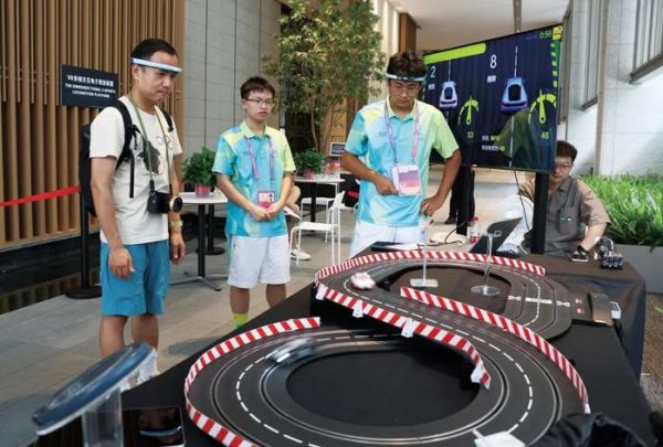 2023 年 9 月12日,杭州亚运村中的脑机赛车可以通过脑电波控制,用“意念”让赛车跑起来。在“村里”,智能应用场景随处可见。(图 / 钱晨菲 / 中新社)在“城市大脑”的带动下,人们也渐渐习得更为绿色低碳的生活方式。2022年4月,杭州提出打造“首届碳中和亚运会”的目标。这一理念贯穿始终,场馆方面,杭州奥体中心游泳馆实现导光管无电照明系统和水循环利用,体育场则采用冰蓄冷系统,减少高峰用电负荷。