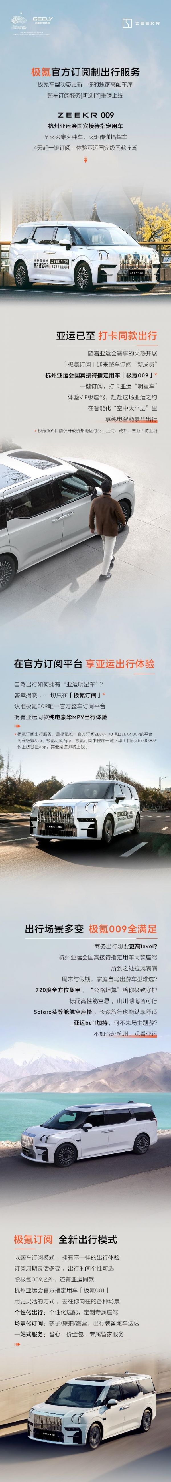 该服务上线初期仅开放杭州地区订阅,面向上海、成都、三亚的服务即将上线。此外,极氪 009 车型目前也仅供极氪 App 端订阅,包括极氪订阅 App / 小程序在内的其他订阅渠道也都会“即将上线”。