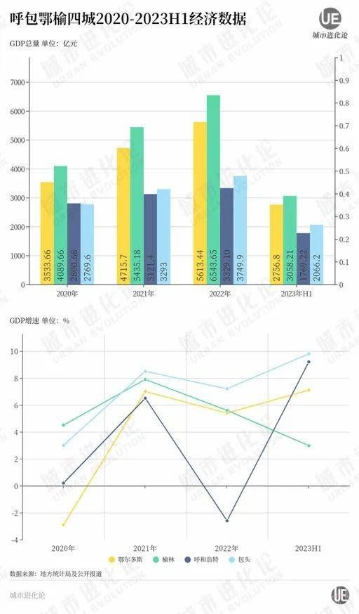 从增速来看,2020年、2021年、2022年和今年上半年,GDP同比增长-2.9%、7%、5.4%和7.1%。这个经济增速,在呼包鄂榆城市群的四座城市中,往往排在第三或第四的位置。