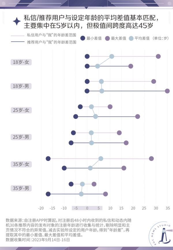 那么,社交软件是否会默认所有新用户感兴趣的和对ta感兴趣的都是年龄相仿者?18岁女和35岁女更易被年龄差距较大的人选择,只是因为个人的偏好,并不是平台将这两种人设分发给了更广阔的年龄群体?