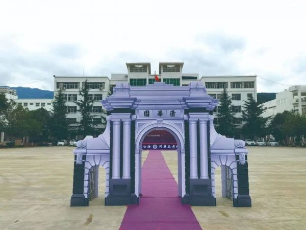 ▲会泽实验高中开学典礼上的清华校门模型。