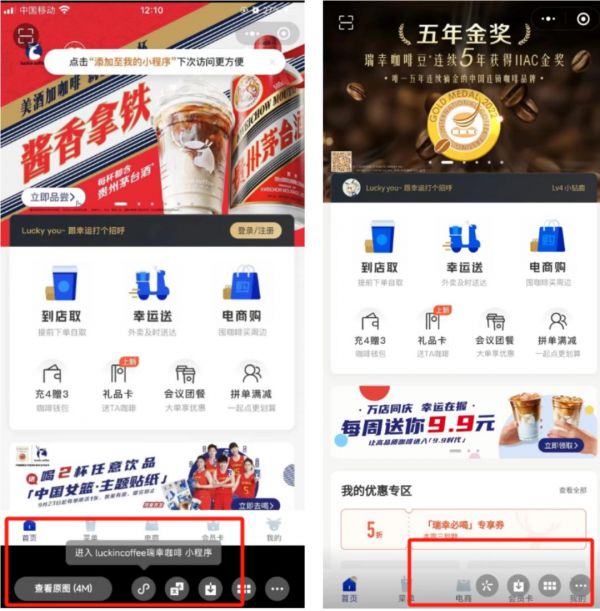 见实测试了包括潮玩、 百货、游戏、快消等行业近20个小程序,不过从目前的结果来看仅有两家咖啡店的小程序截图中出现了这一小程序跳转链接。