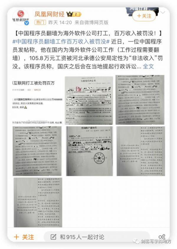 3,我最早以为该程序员不仅仅是连接到外国的网站这么简单,可能还有别的事,那么罚没收入很难辩解。但他自己把处罚决定书丢到了网站上,上面并没有写其他问题,而且如果有其他问题,就不会仅仅是罚款200元这么简单了。