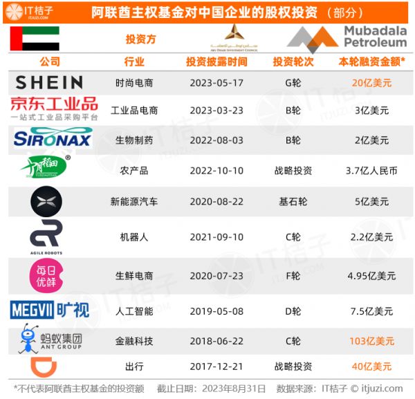 比如,阿布扎比近期才投的中国独角兽 Shein。今年 5 月,据华尔街日报引述知情人士消息称,Shein 已在最新一轮融资中募资 20 亿美元;由老股东红杉资本、泛大西洋投资集团和新进投资者阿联酋主权财富基金 Mubadala 领投。