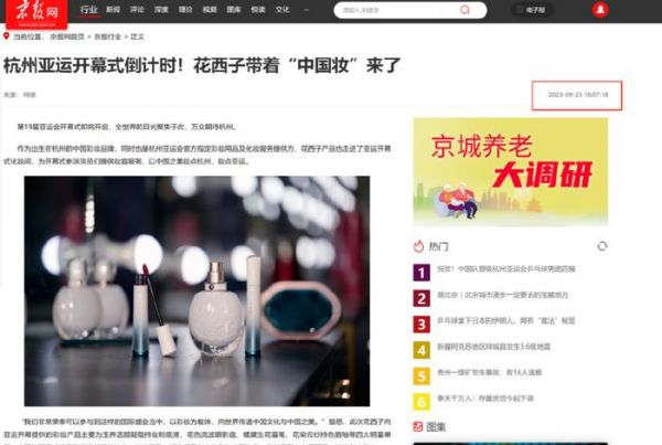 而在第19届亚运会正式开幕后的9月25日下午,花西子就在网上发布了一篇《杭州亚运开幕式倒计时!花西子带着“中国妆”来了》的宣传稿,再次强调自己出身于杭州,是杭州亚运会官方指定彩妆用品及化妆服务提供方,以及其作为中国品牌的价值。