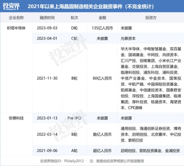 除了上市潮,晶圆制造领域的大额融资接连产生。投资界根据公开数据不完全统计,截至目前,上海晶圆制造相关企业融资事件达15起,亿元级别的融资案例接踵而至。