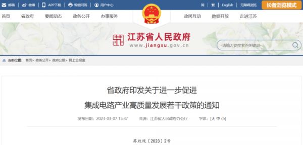 今年3月,江苏省印发《关于进一步促进集成电路产业高质量发展若干政策》,在项目用地、税收优惠、环境容量、能耗指标、人才引进等方面给予支持,对首次入围中国企业500强的集成电路企业给予100万元奖励。鼓励和支持集成电路企业加强资源整合,对企业按照市场化原则进行的并购重组,符合条件的按不超过并购企业对目标企业实际出资额(支付现金部分)的5%给予补助,最高不超过2000万元。