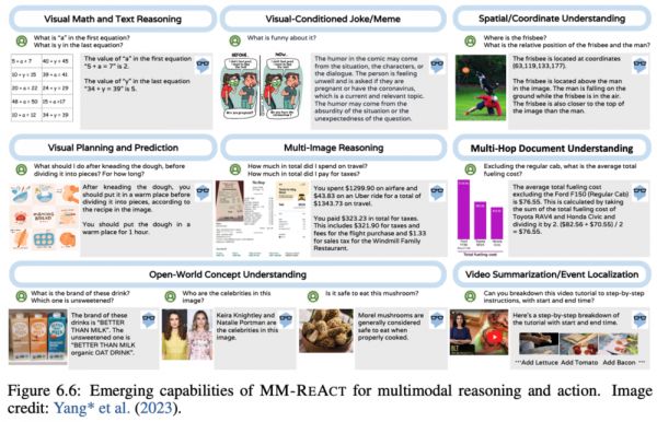 以多模态代理 MM-REACT 为例,介绍了它的能力和如何扩展到整合最新的 LLMs 和其他工具中。最后,研究还讨论了如何改进或评估多模态代理以及多模态代理的多样化应用。