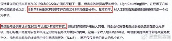 而且由于前期过于激进,导致行业未来投资或将更加保守。据LightCounting预计,在经历了几年两位数的增长之后,排名前15位的ICP(互联网内容提供商)的资本开支在2023年将仅增长4%,基本持平。另外电信服务提供商计划在2023年也减少其资本开支。