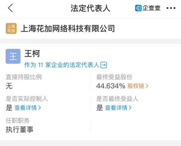企查查资料显示,花加的创始人、实际控制人为王柯。他曾多次创业,是NOOLABEL私人衣橱创始人,零零狸网拍联合创始人,曾在搜屋网络、安居客担任产品经理。