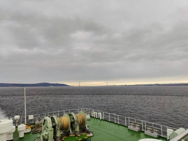 早上没起来,没看到过大桥的场景,这是船尾拍的大桥