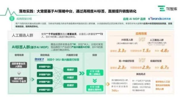 在亿欧TE智库此前发布的《2023中国营销+AIGC市场研究报告》中,云积天赫的AI MDP作为“先见者”样本出现,相较非AI营销决策,MDP实现3.3倍客单价、1.5倍付款转化率,投入产出比达4.8。