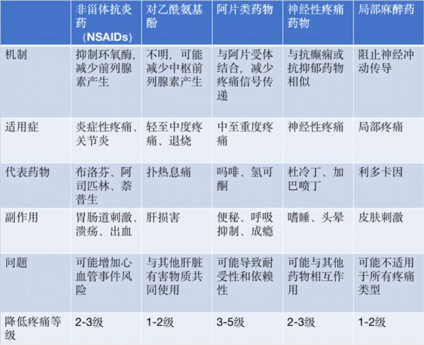 容明强:目前常见镇痛药物有:非甾体类抗炎药(NSAIDs)、对乙酰氨基酚、阿片类药物、神经性疼痛类药物、局部麻醉剂等。