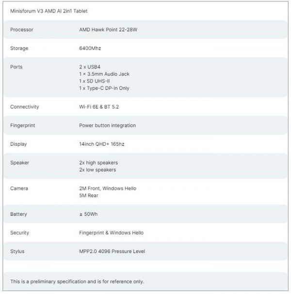 14 英寸铭凡 V3 锐龙平板曝光:首搭 AMD “Hawk Point”APU