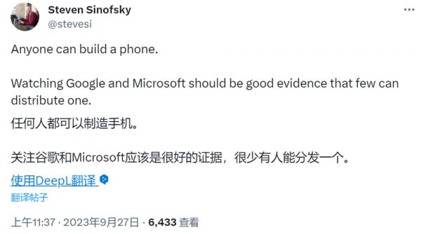 也有一些人对这款设备可能是智能手机持怀疑态度。比如,前微软 Windows 部门总裁 Steven Sinofsky 回应 Ben Thompson ,“任何人都可以制造手机。看看谷歌和微软就知道了,很少有人能发布这样的产品。”